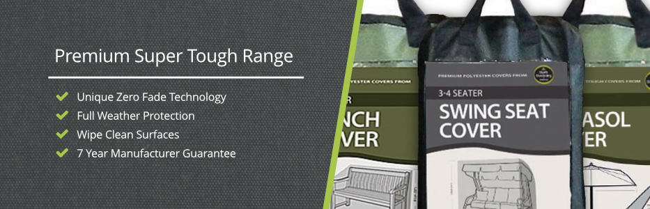 The Premium Super Tough garden furniture cover range features our unique zero fade technology, full UV protection against the sun for longer life and a wipe clean surface. Made from high quality super tough cross laminated material.